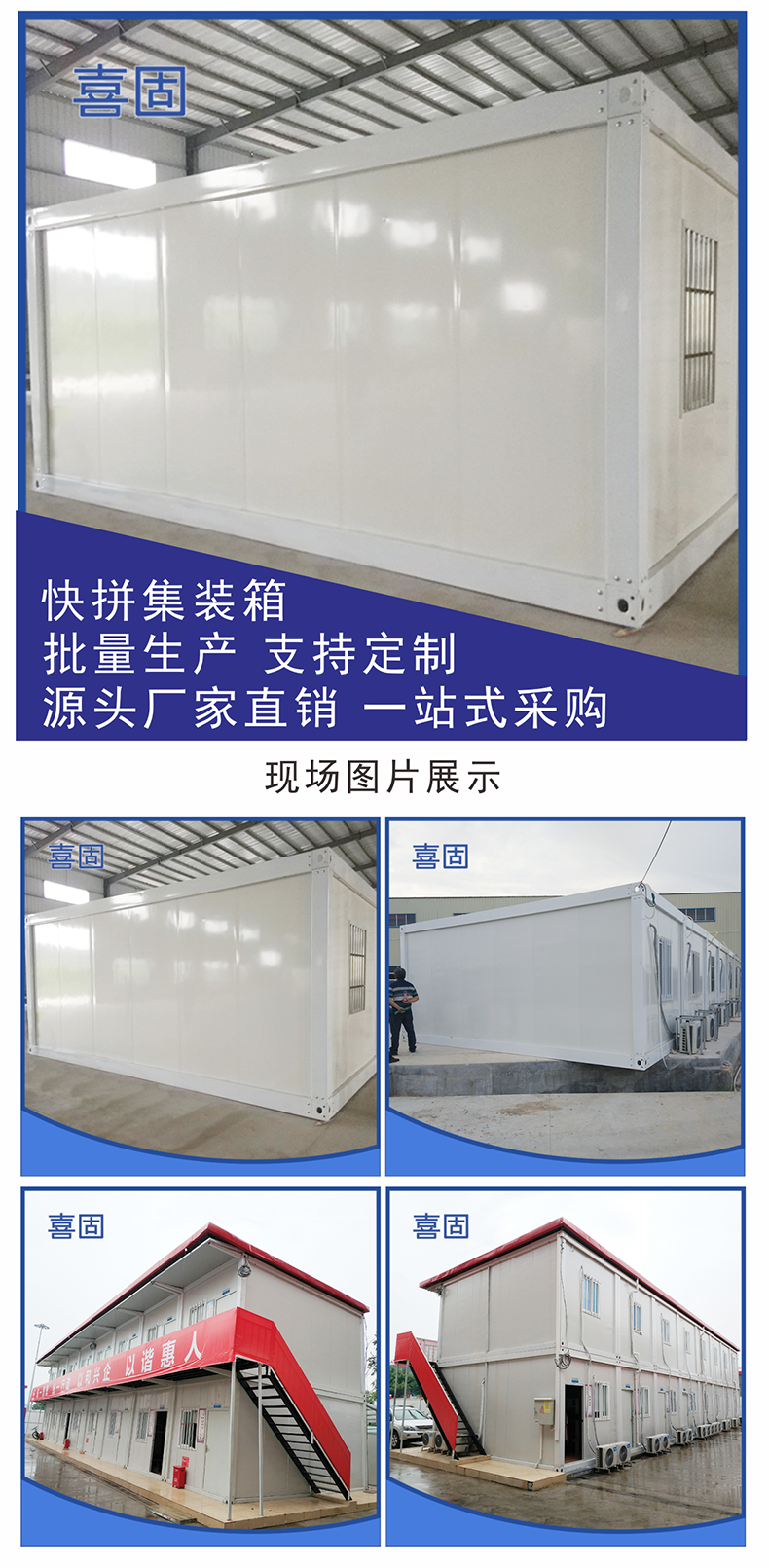 公司生產(chǎn)的“喜固”牌系列活動板房是在日式活動板房及國內(nèi)同類產(chǎn)品的基礎(chǔ)上經(jīng)過論證實踐后加改進(jìn)而成的,從而使“喜固”牌系列產(chǎn)品達(dá)到快速安裝、拆遷容易、美觀、安全、節(jié)約成本等特點。